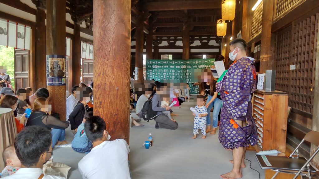 当日は、本堂でのご住職の法話に始まり、泣き相撲奉納、写真撮影、手形色紙の製作など盛りだくさんの行事でした。