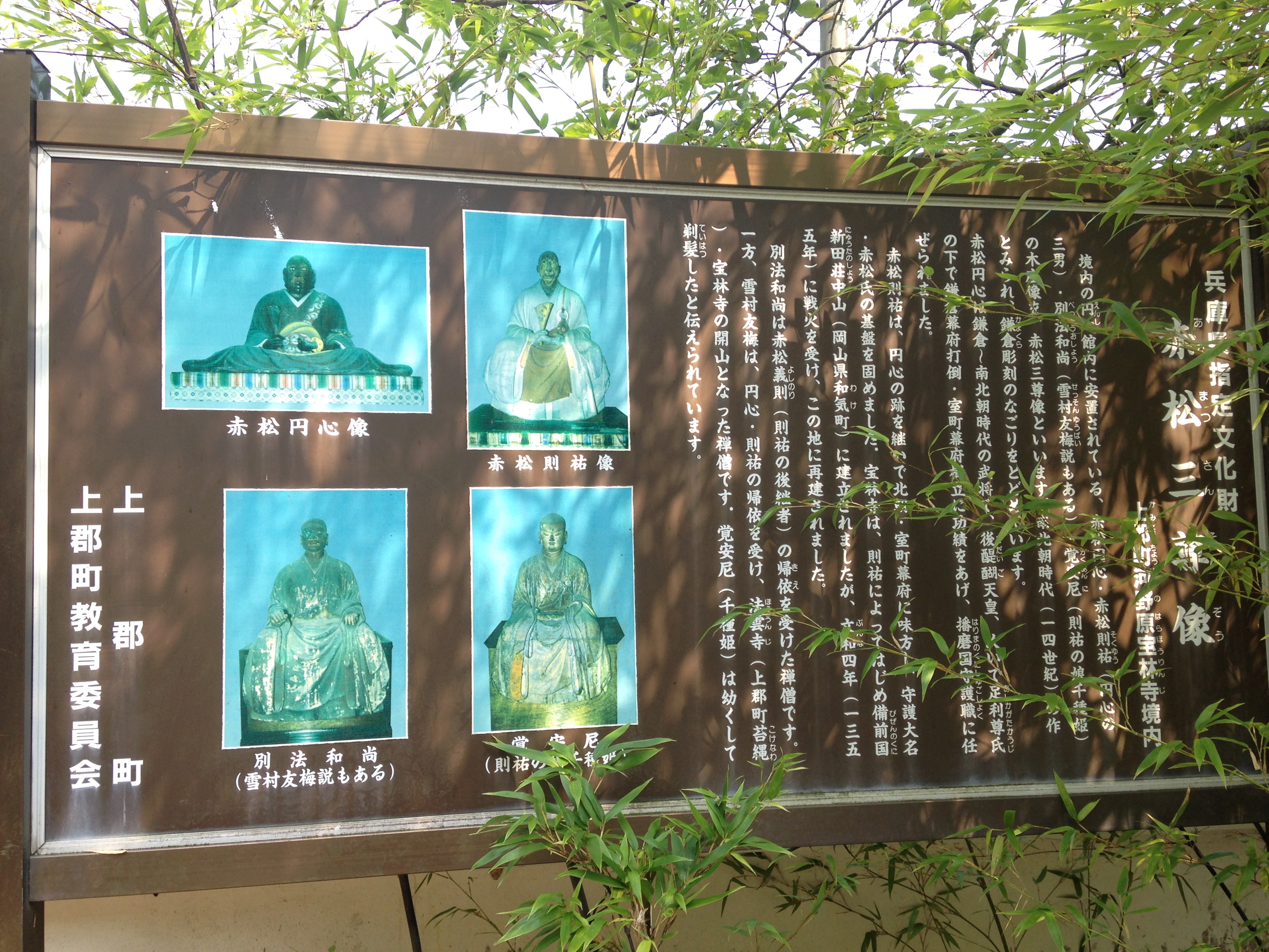 写真は撮影できないので、掲載しませんが、木像もさることながら、一番興味津々は赤松円心着用の兜です。もっと近くで見たいものですが・・・・次はいついけるものやら。