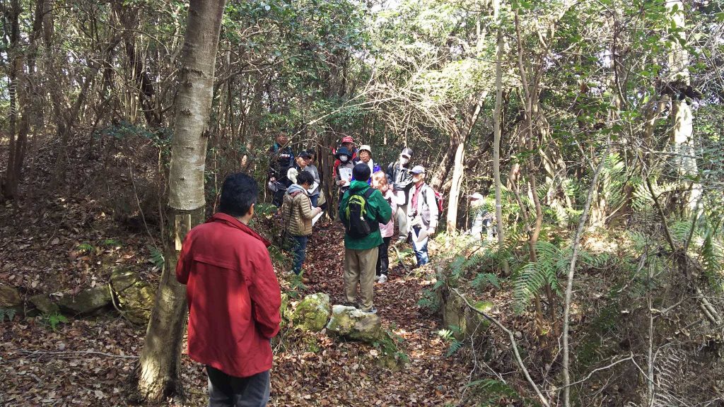 円照寺様をスタートした参加者のみなさんは、先生の解説を聞きながら、ゆるりと史跡を1つ1つ見て回り、山頂本丸へ。