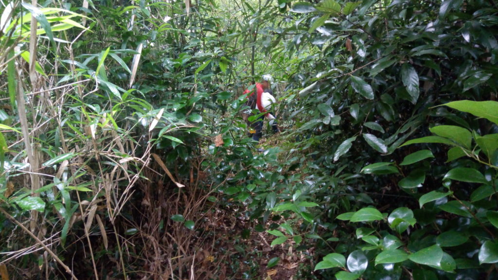 整備と一口にいっても、業者さんに依頼して草の除去や竹、木々の伐採をすればいいというものではありません。むやみに伐採してしまえば、雨風にさらされ、大事な遺構を破壊することになります。適度に灌木を伐採し、遺構を見やすくすることと、遺構を保つことの料率が必要となります。