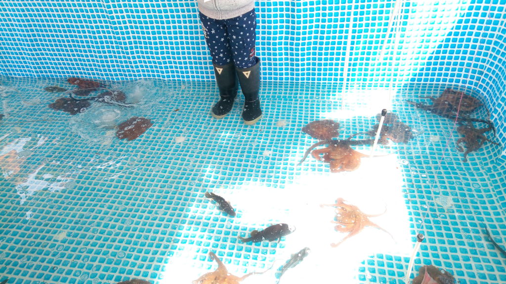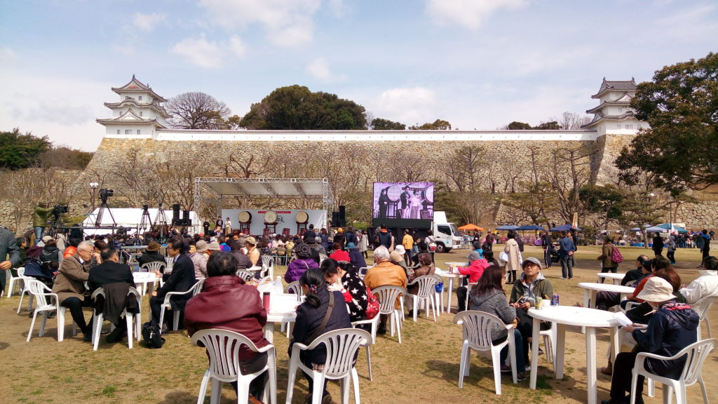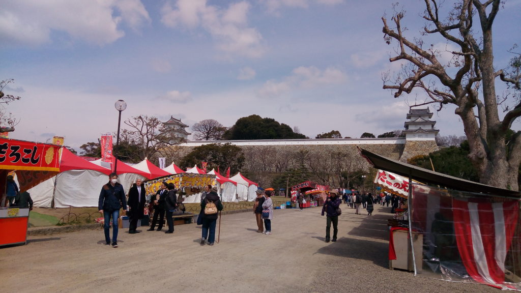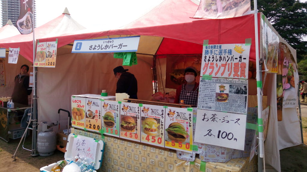 城内には明石だけでなく、赤穂、加古川、上郡など播磨各地のグルメ店舗が出店していました。腹が減っていたので、さっそく、上郡の鹿の肉のバーガーをぺろり。タコ釣りもいつも人気ですね!