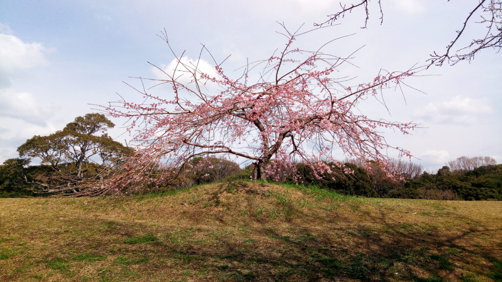 明石城の石垣の下部を隠していた木々が伐採され、その全容がくっきり見えるようになっています。桜はまだちょっと先のようですね。