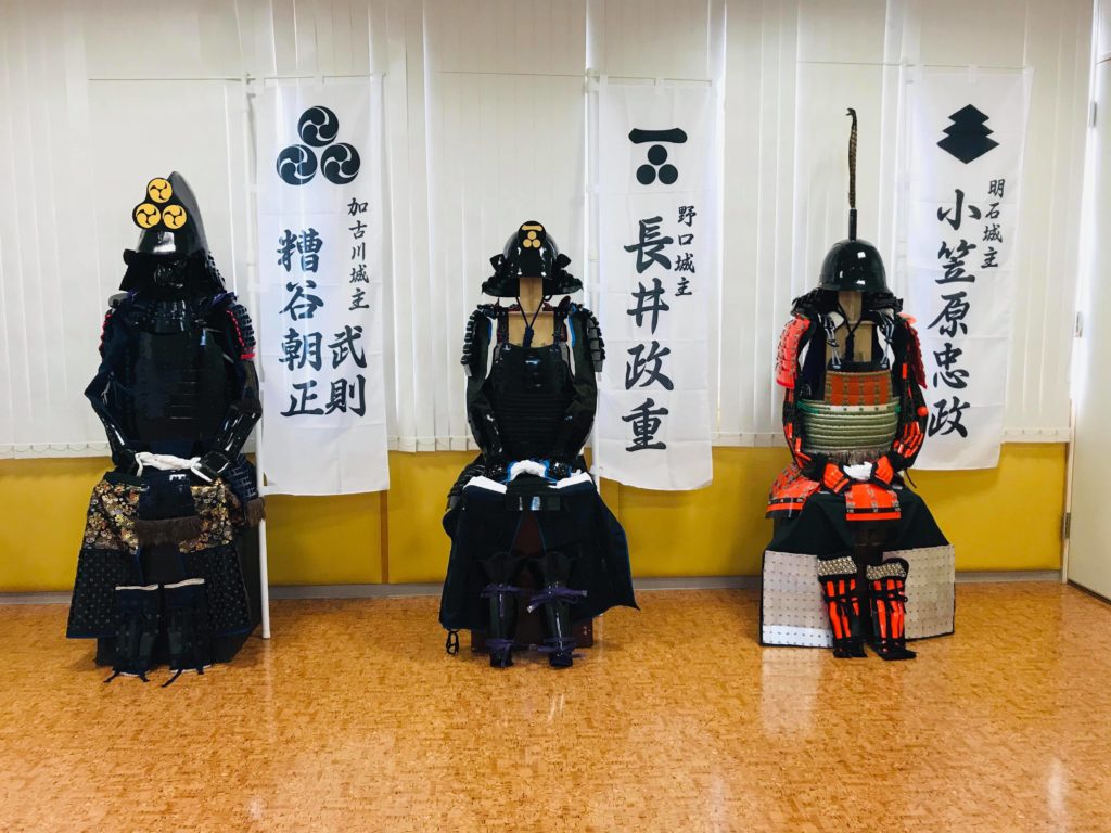 今回展示したのは、加古川城城主 糟谷朝正・武則公、野口城主長井政重公、明石城主小笠原忠政公の3領でした。もちろん明石は加古川ではありませんが、いずれ東播地域に活動の幅を広げたいので、隊に含めています。