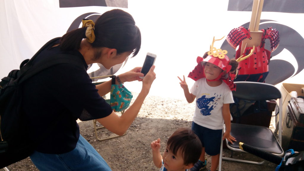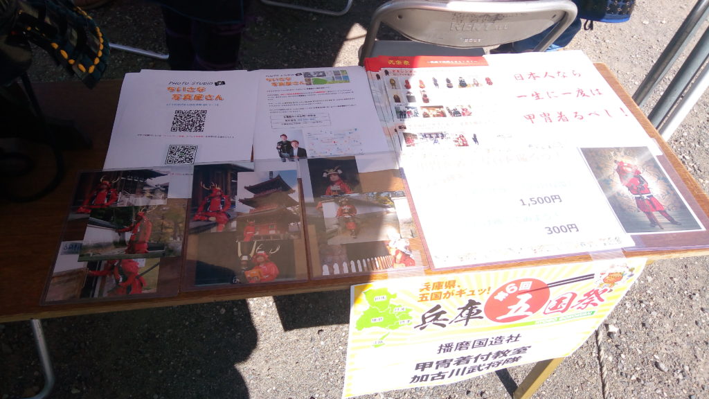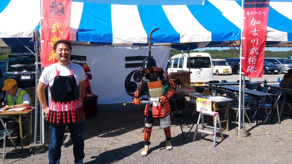 武楽衆は、「体験コーナー」で出店しました。甲冑の着付け体験と加古川武将隊による賑やかしを行いました。