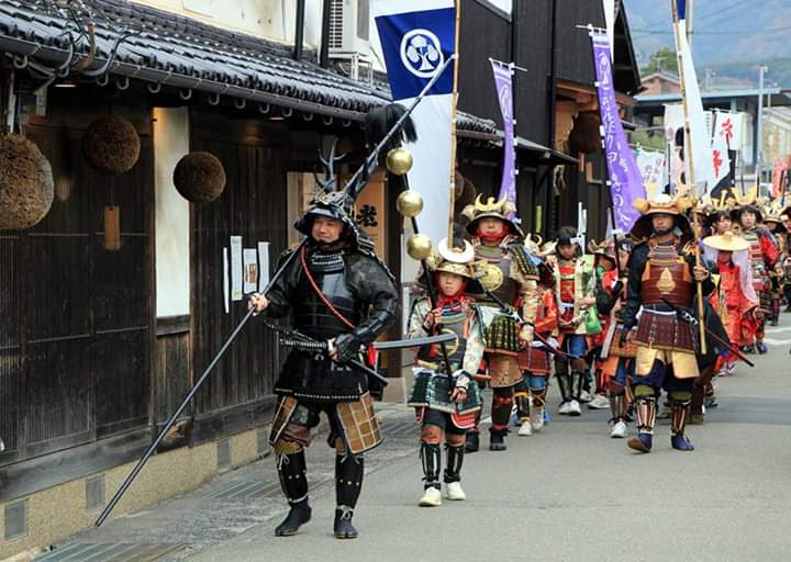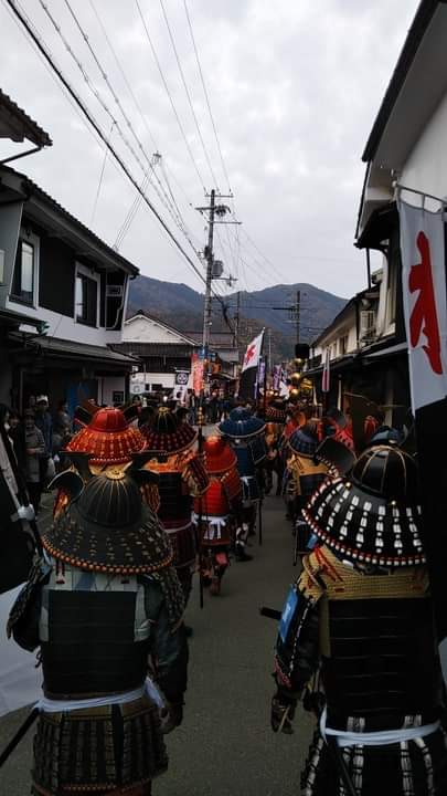 宍粟山崎手作り甲冑の会の皆様が中心となり、本多家の威厳を示すように武者行列が行われています。今年はおよそ70名の市内外の武者が集まり、行列が行われました。