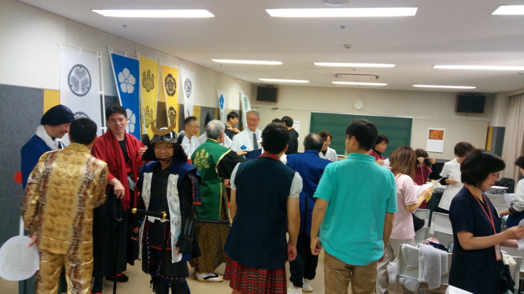 今回のストーリーを簡単にまとめると、患者(武田晴信さん)に冷たい最近(?)の医者・明智光秀先生が、信長、秀吉、家康の魂に順番に乗っ取られ、だんだんとこれからのあるべき医療の在り方、各職種間連携の在り方に気づき、最後には一人の患者を多くの職種間連携で幸せにするというもの。