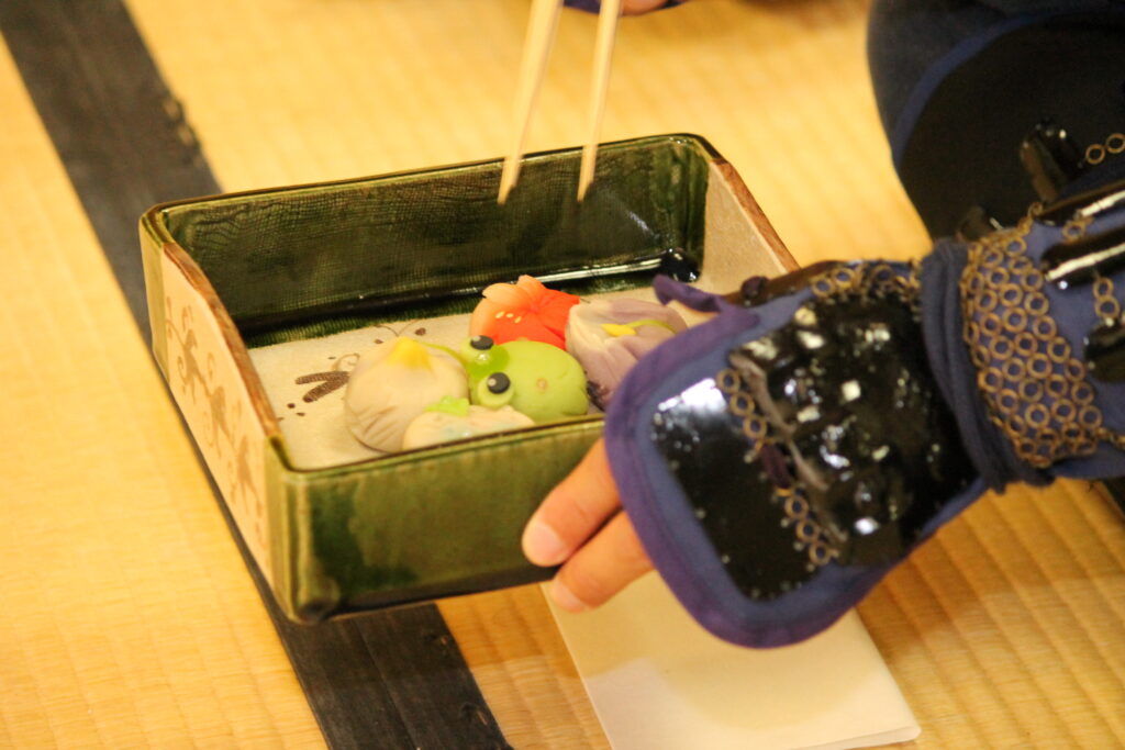 茶道の先生をお招きし、実際にその所作や作法を教わりながら、美味しいお茶と和菓子をいただきました。