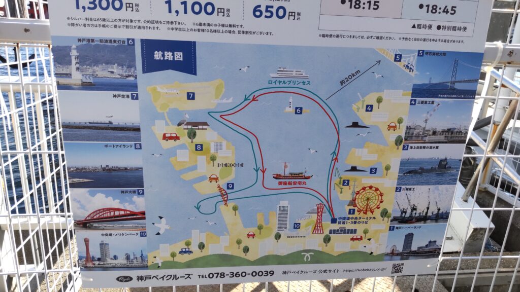 神戸港を出発し、港や遠く和歌山や淡路などを眺めながら、お殿様気分を味わえます。