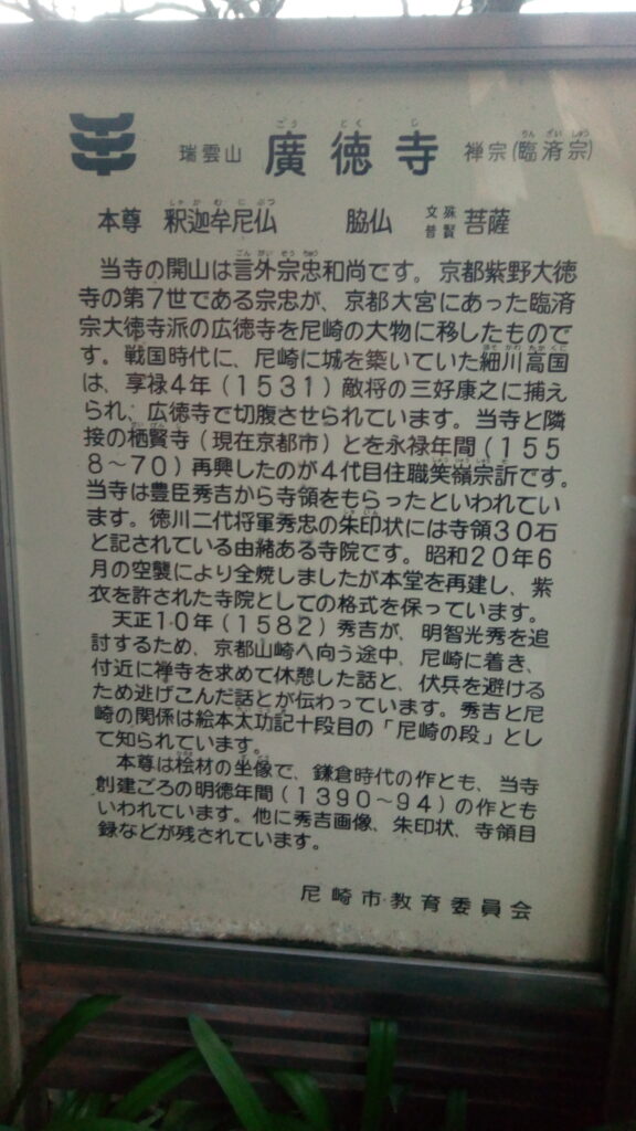 近くの山陽電鉄大物駅手前、交番の近くに大物崩れの戦いの碑、看板がある。