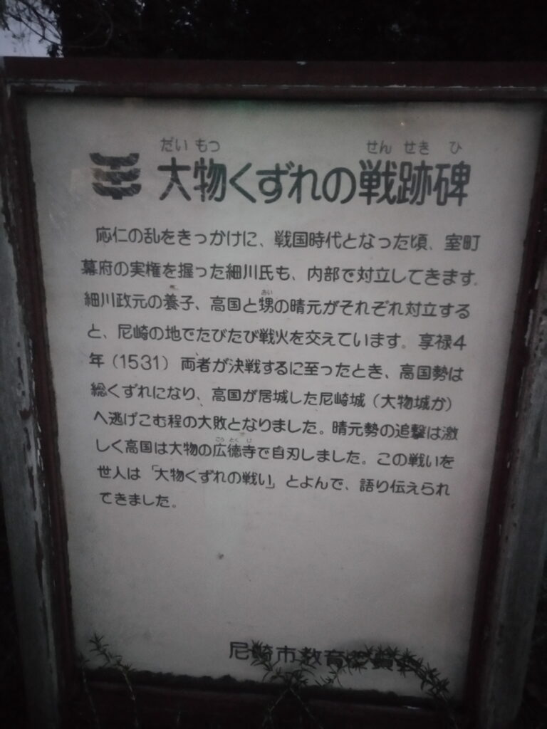盛り返そうとするも赤松勢に裏切られて、ここ大物の戦いで大敗、広徳寺(当時の所在は今と違う)にて自害に追い込まれたという。
