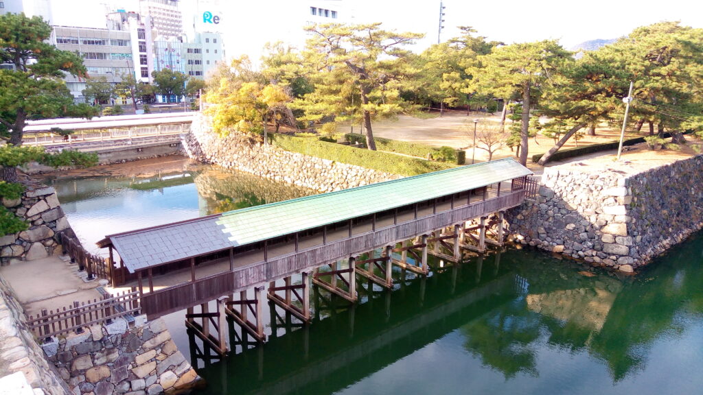 現在は、三重櫓や門など一部の建物と一部の石垣、堀が現存し、城跡は「玉藻公園」として整備されている。