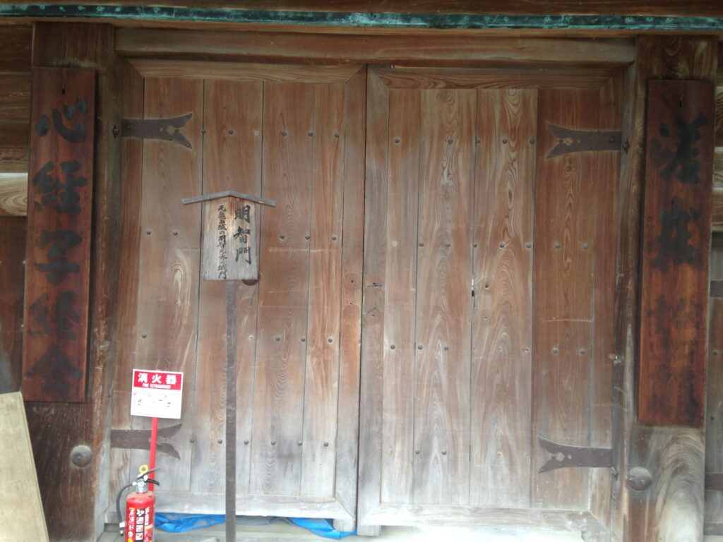 京都嵐山の名刹、大覚寺です。正面の山門の左側に、明智門という名前の門があり、これが丹波亀山城からの移築だそうです。私が行ったときはあいにく修理中で囲いがあり、全体を見れませんでした。