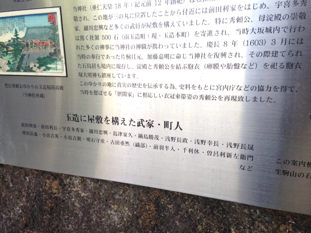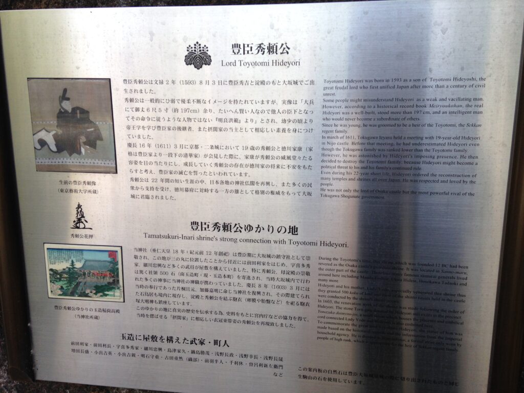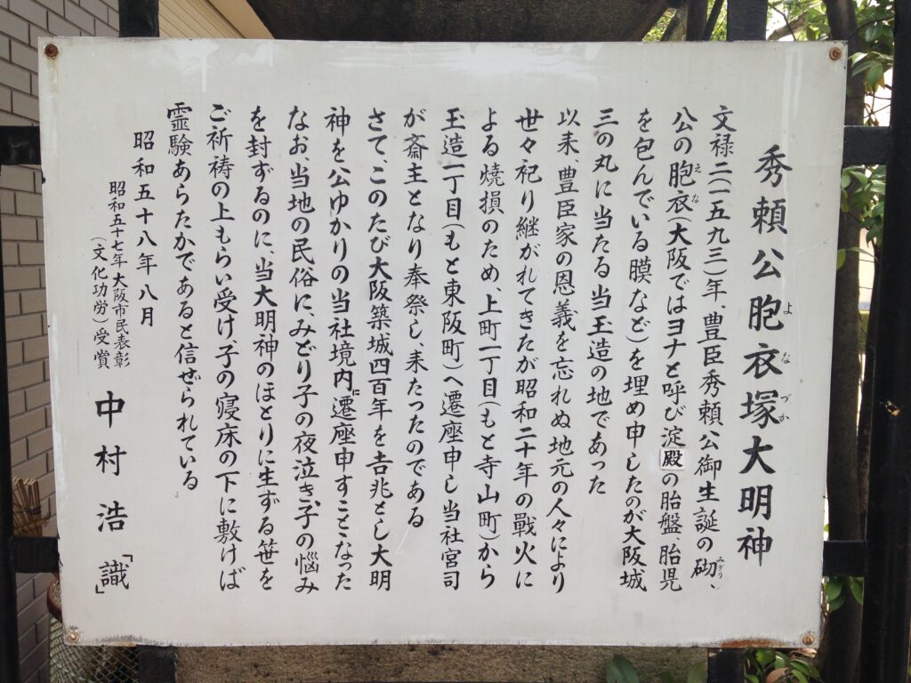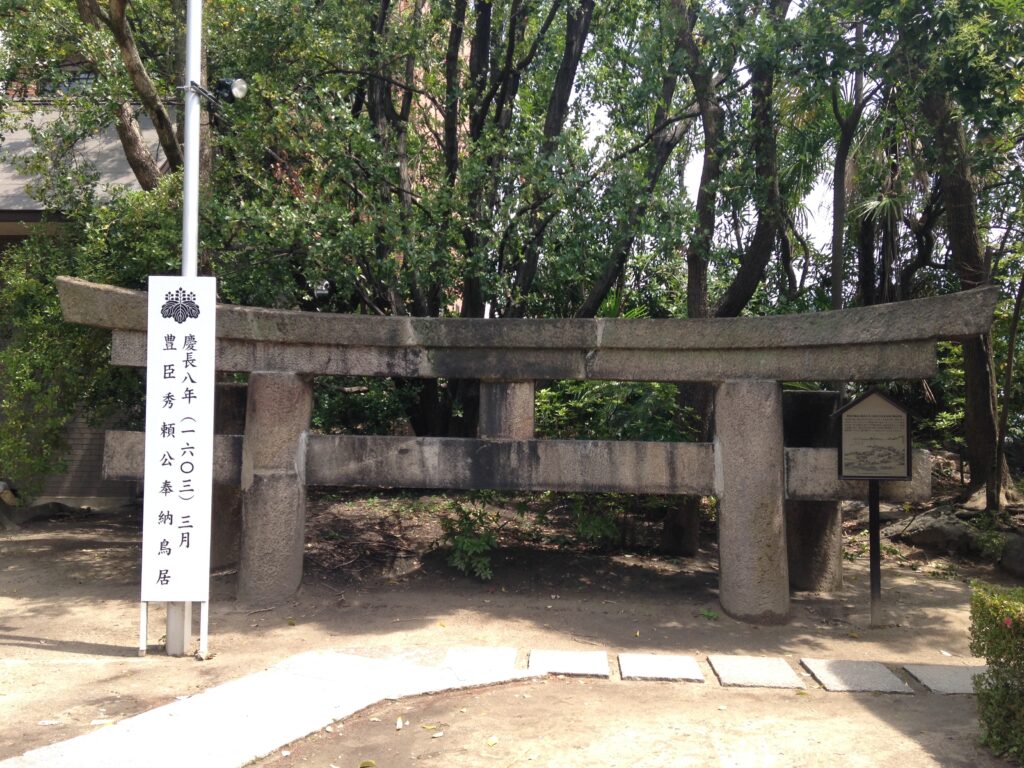 境内には秀頼公の銅像が立ち、淀君が秀頼公を生んだ際の胎盤を神として奉じた社殿があります。