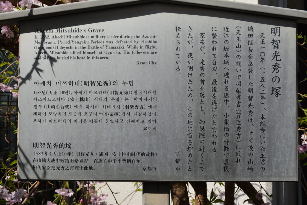 Tweet 光秀饅頭 光秀は山崎の合戦で敗れ、藪の中で農民に刺殺されたと言われています。家臣は首を知恩院まで運ぼうとしたところ、ここで夜が明けてしまったので、この地に埋めたと伝わります。 この塚は、すぐそこの餅寅さんが先祖代々守ってきているそうです。光秀饅頭を是非買ってください。 Tweet 関連 2022-04-07