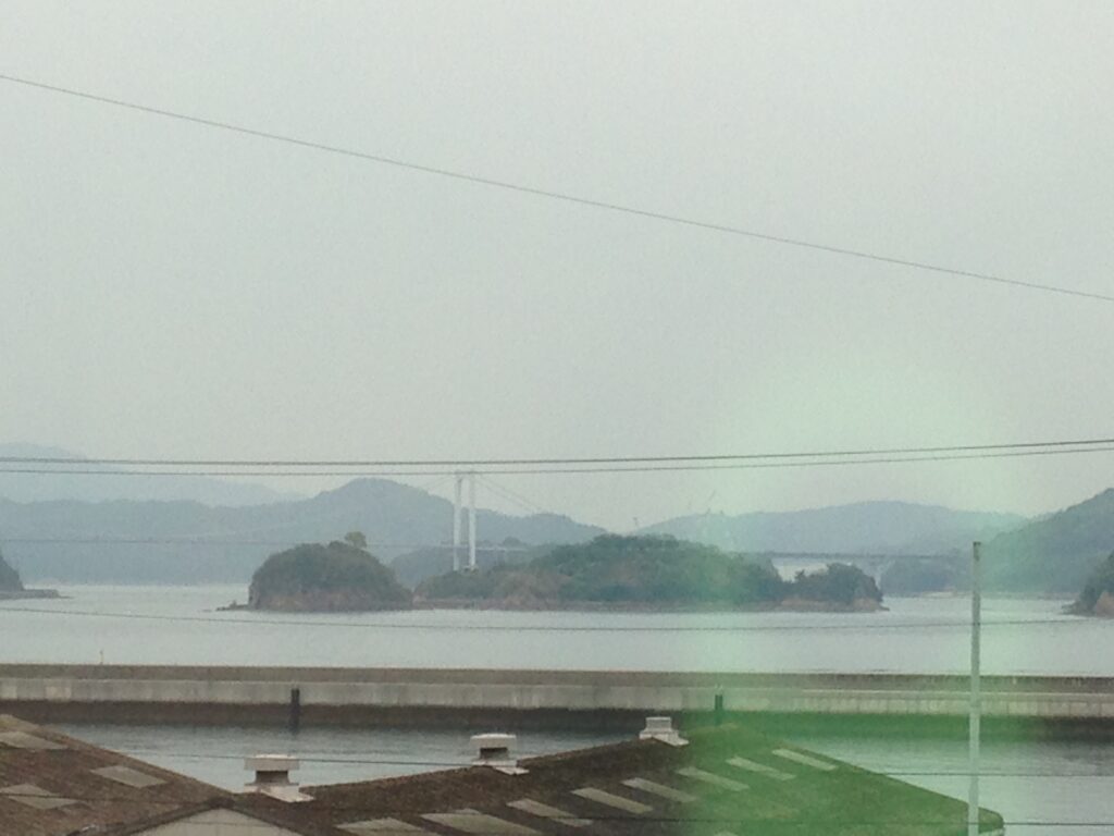 屋上からは目の前に能島城が見えます。どうやって渡るのかわかりませんでしたが・・・。