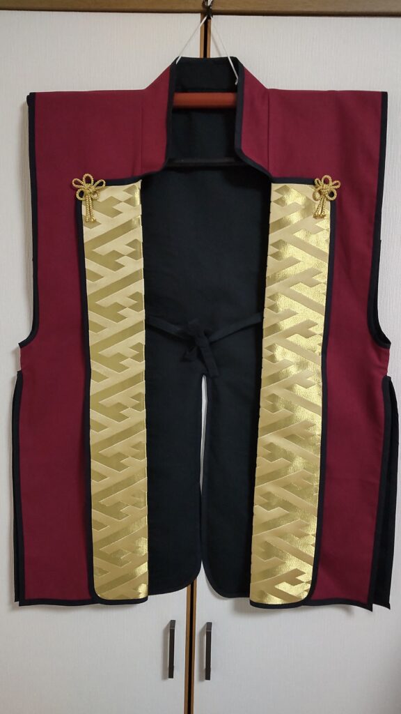 Tweet 演武でのご利用で御依頼いただきました。 この度ご依頼いただきましたのは、とある演武でご使用されるという陣羽織です。デザインは深い赤の臙脂色を基調とし、シックでありながら前の折り返し襟の金襴が華やかさを醸し出しています。 結構激しい動きをされるということでご要望により前留めは紐タイプにいたしました。ご依頼者様の素晴らしい演舞にひらひらと舞う陣羽織が花を添えられればうれしい限りです。 Tweet 関連 2023-01-04