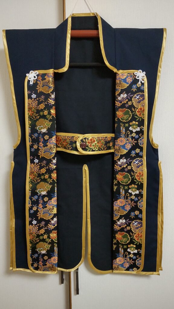 ご依頼いただきました陣羽織は、紺地の表地に黒の裏地。