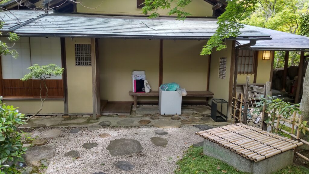 茶室が会場で、障子を開けると大きな庭園と池が見渡せる、すばらしい設えの茶室でした。