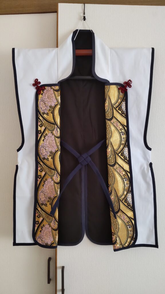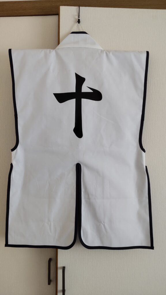 Tweet レンタル用陣羽織のラインナップを追加 久々に、レンタル用の陣羽織を製作し、ラインナップに追加いたしました。今回は島津十字。丸十字ではなく、「十」だけの家紋です。家紋はプリントにしています。白地を基調にし、金色系の金襴生地を前の折り返しとし、黒のふちどりで引き締め。背中には黒の「十」家紋。 Tweet 関連 2026-02-10