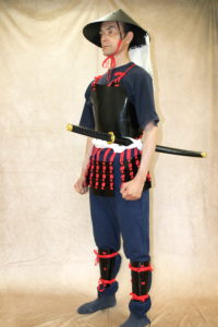 *刀、陣羽織、鎧下(鎧の下に着る衣装)、履物(地下足袋)、その他備品は追加オプションとなります